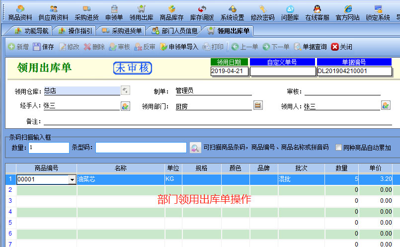 4. **部門(mén)領(lǐng)用**:合理分配各部門(mén)所需物資,避免浪費(fèi)。